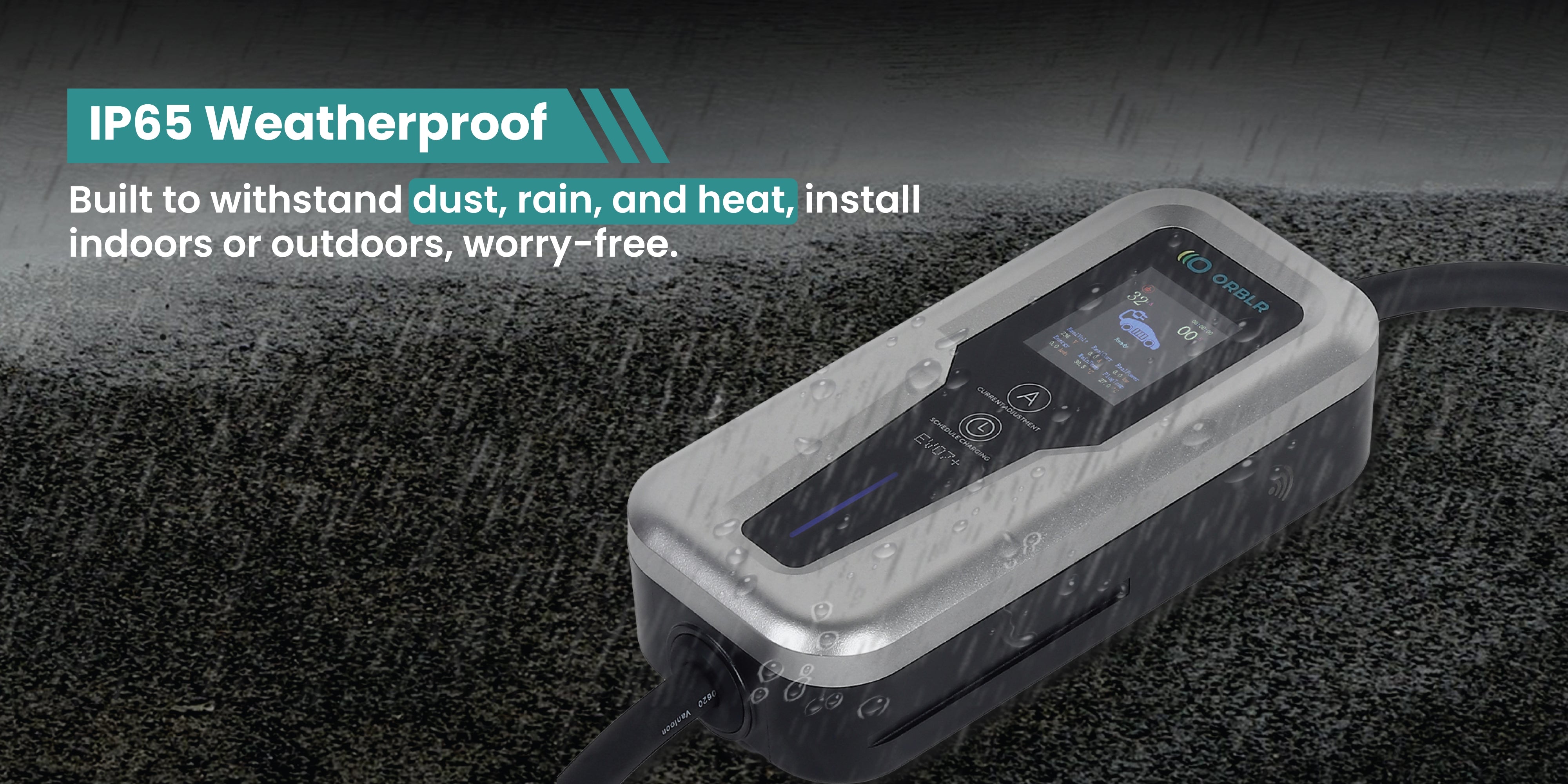 Solid Weatherproof Design: The IP65-rated weatherproof housing provides reliable performance and durability, safeguarding the charger against the weather and ensuring prolonged use.