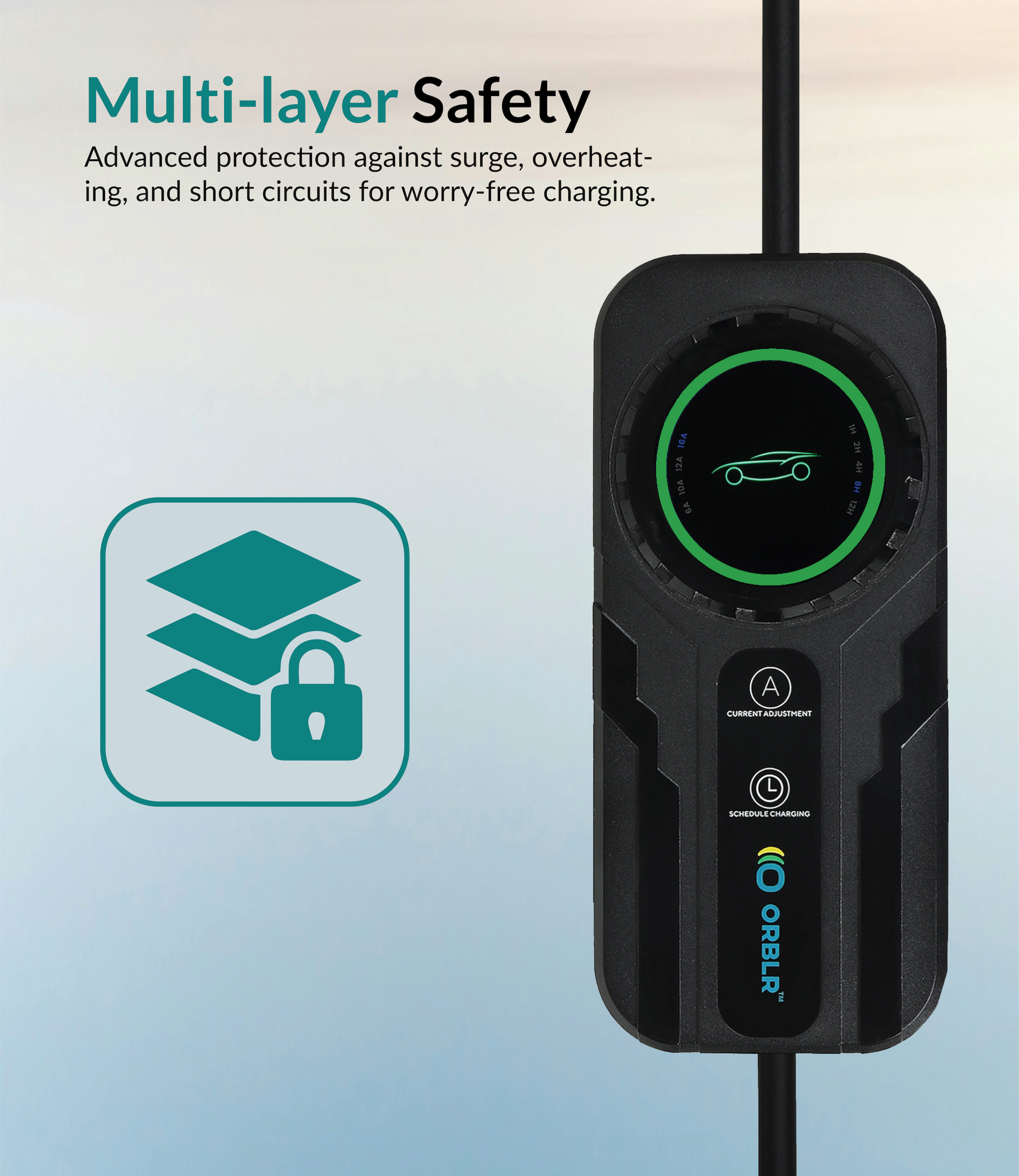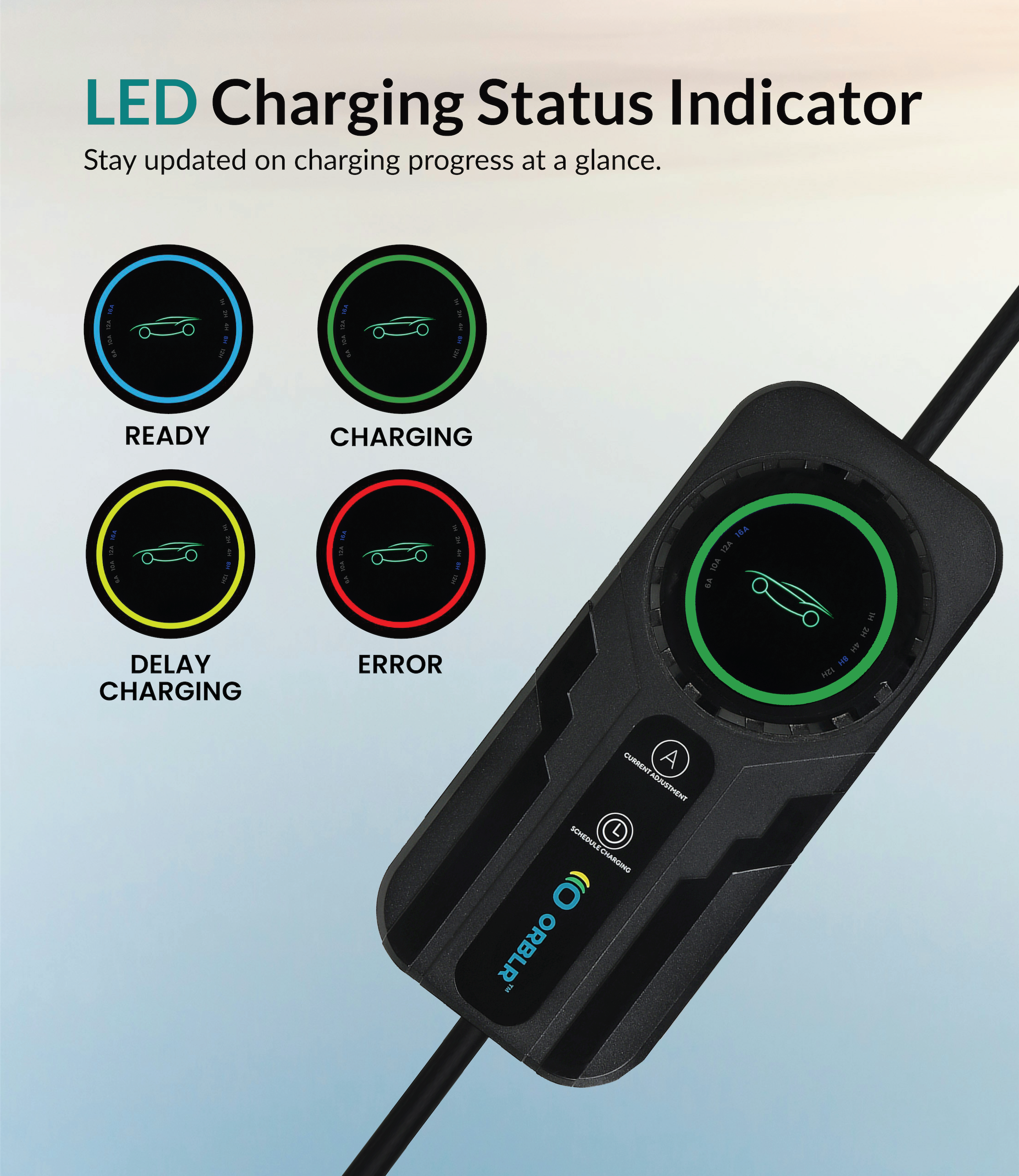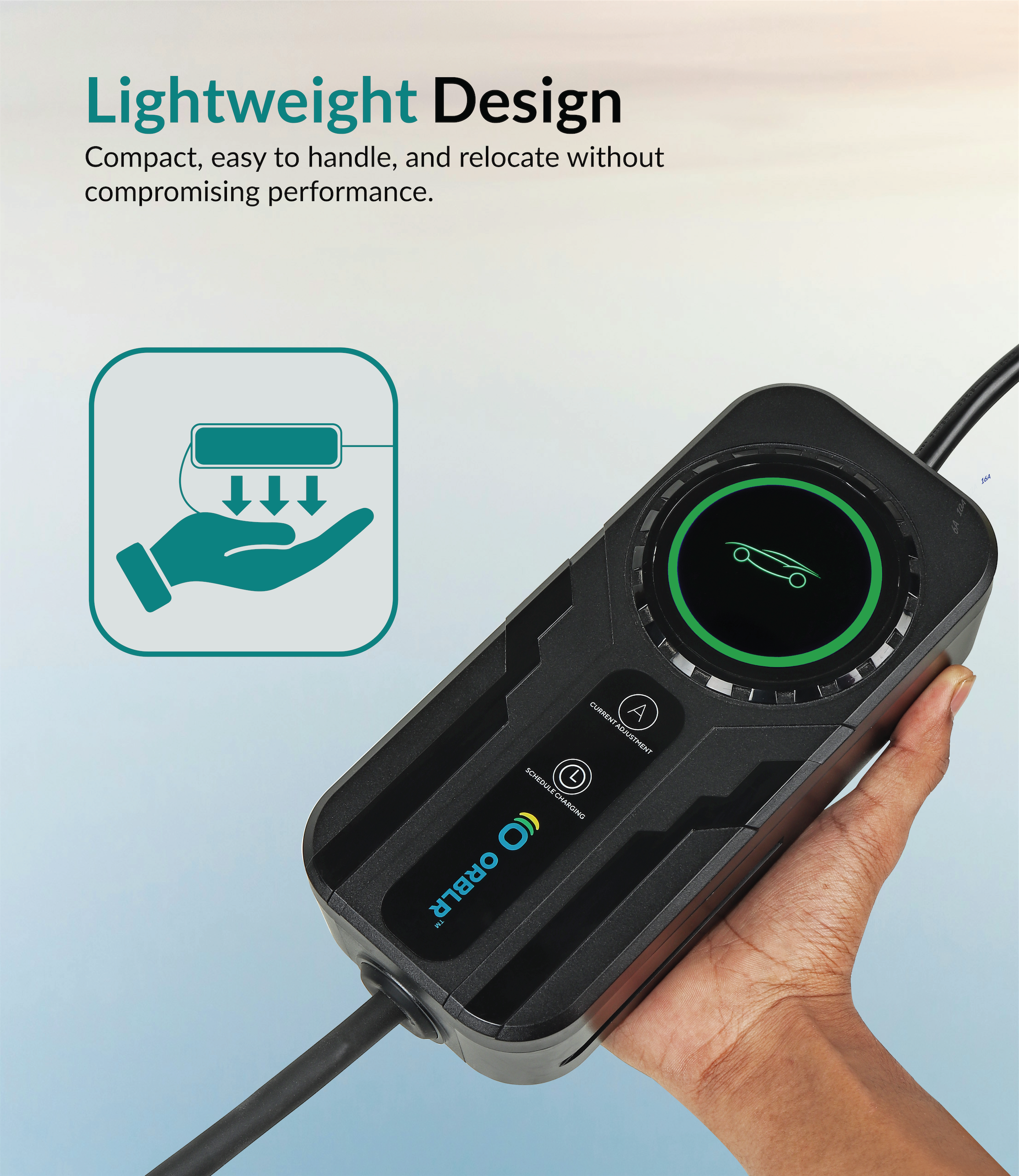 Charge your electric vehicle on the move with the ORBLR AIR Portable EV Charger. Its reliable and convenient charging features allow for constant connection and power, ensuring you stay charged wherever you are. Say farewell to battery anxiety and stay prepared with ORBLR AIR.