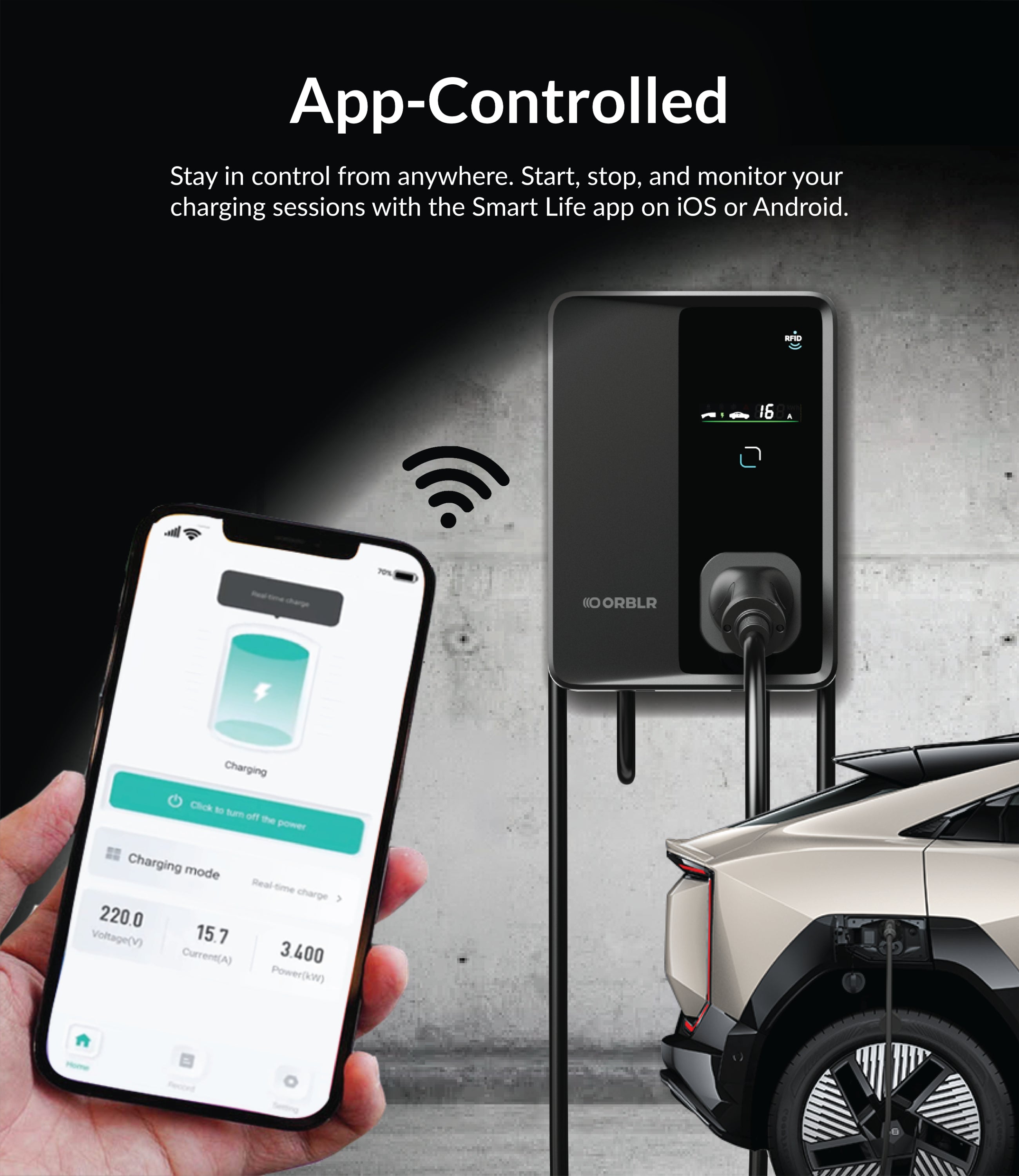The app enables you to schedule charging sessions, monitor real-time charging status, and customize settings directly from your smartphone.