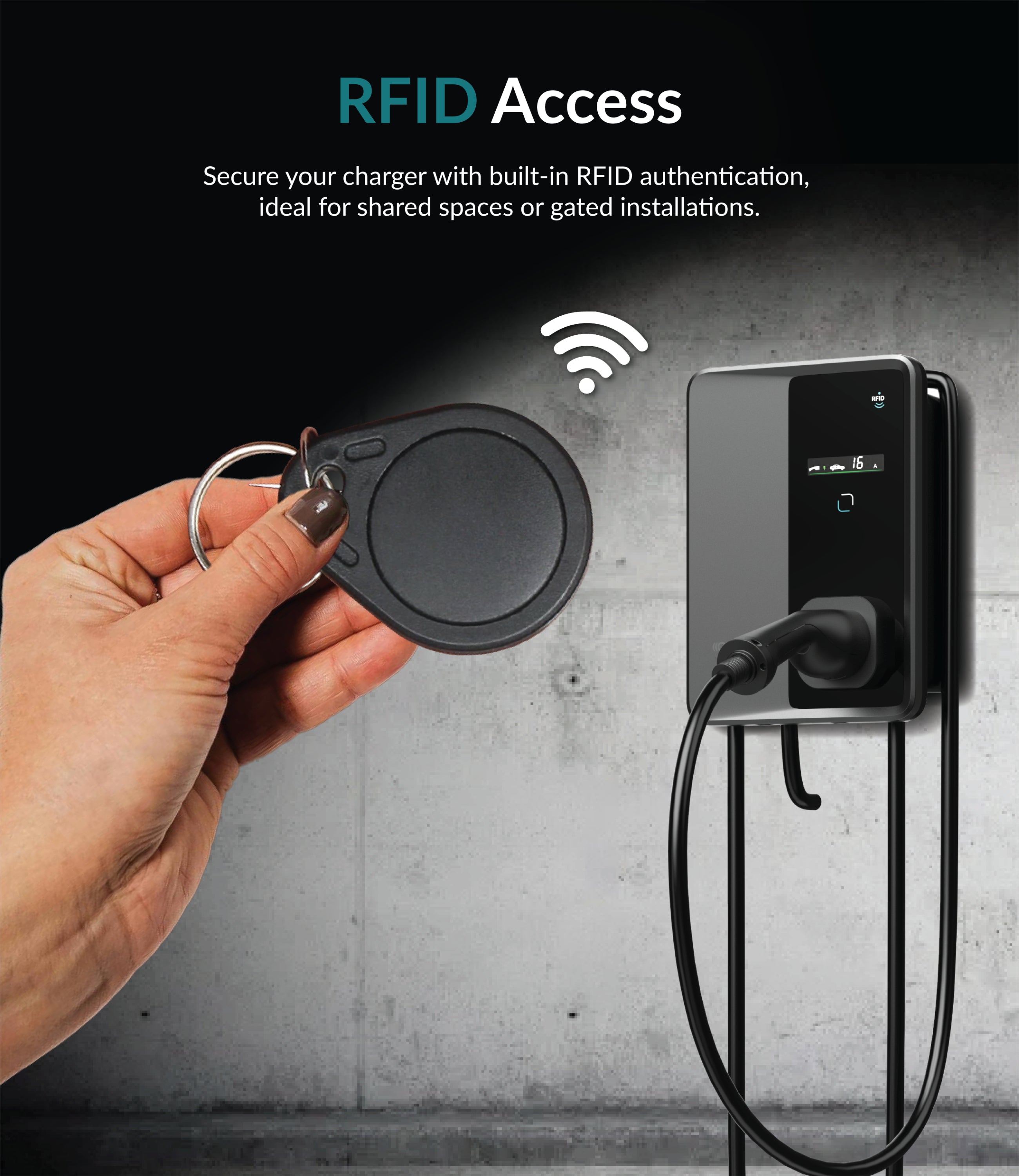 Yes, CYBR11 supports RFID access control, making it ideal for shared parking spaces or gated communities. Only authorized users can initiate charging using RFID tags.